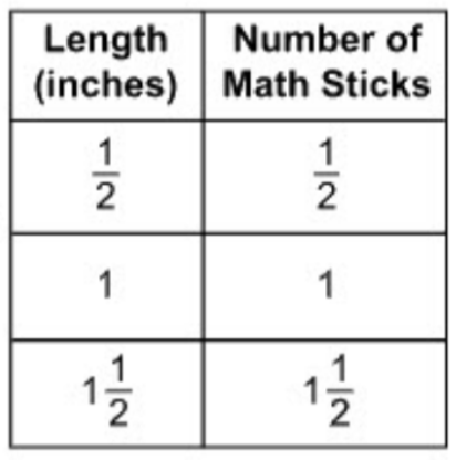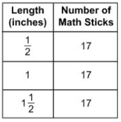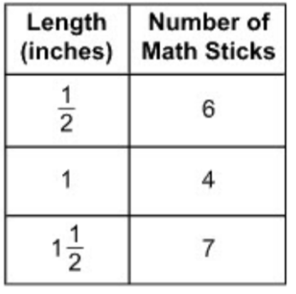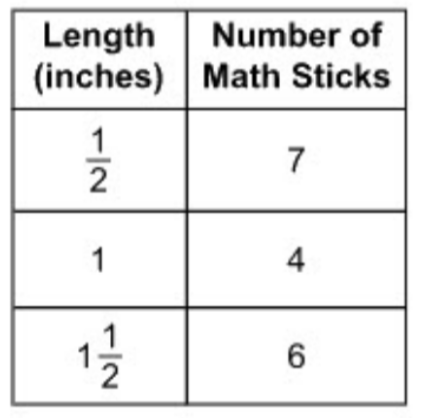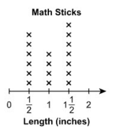 Kai has three groups of math sticks arranged by length, in inches. The line plot shows how many sticks of each length Kai has.