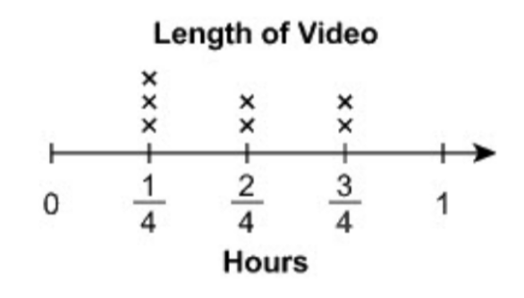 Barry watches videos online. He records the lengths, in hours, of his 7 favorite videos. The lengths are shown on the line plot.