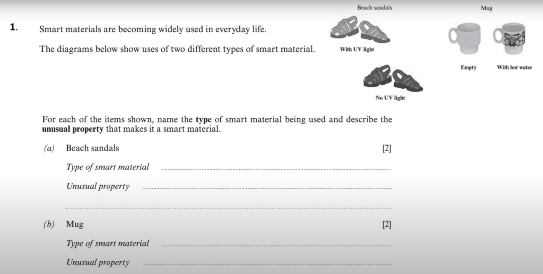 A Formative about composite and smart materials with drag and drop questions and embedded vieos.