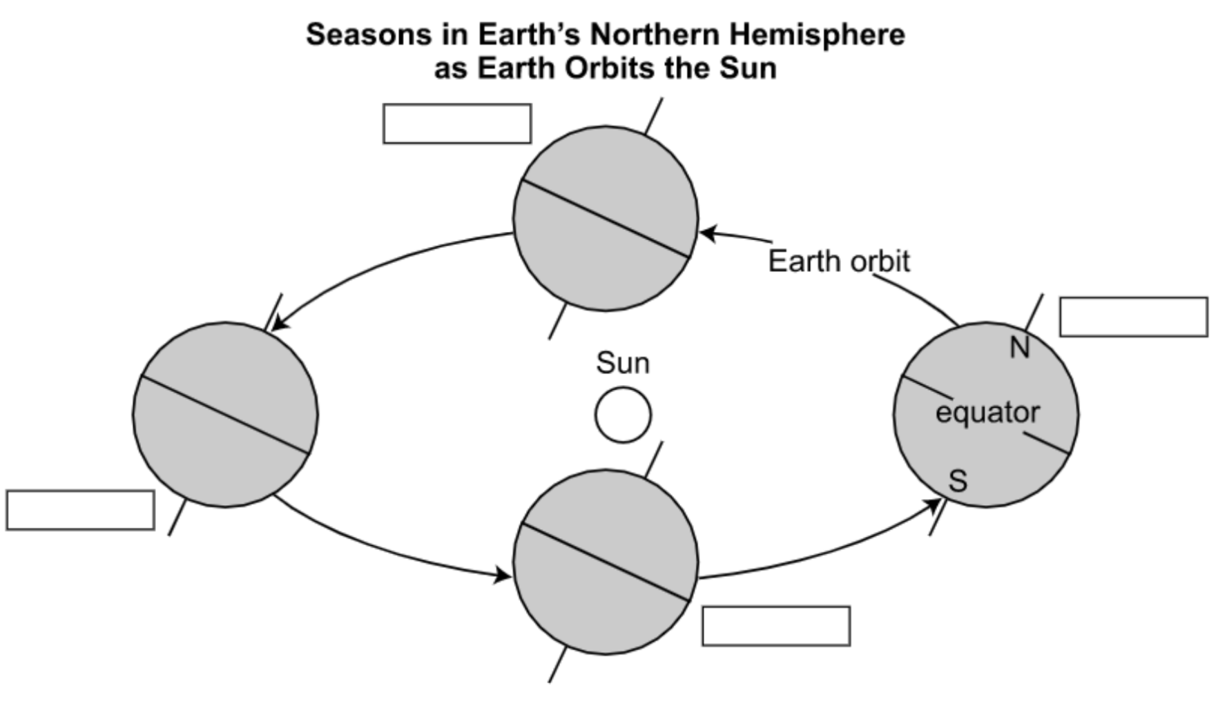 A student draws a model of Earth's orbit around the Sun to demonstrate seasonal changes in the Northern Hemisphere.