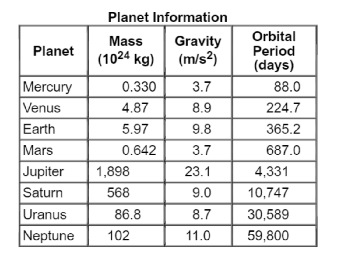 Based on the data, select the two statements that best describe the planets in our solar system.