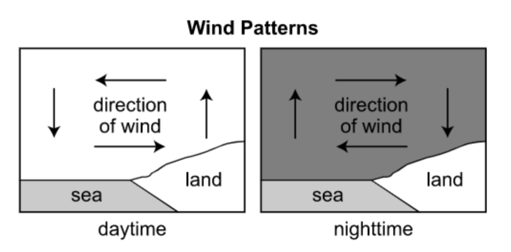 The model shows how wind patterns near the sea change between daytime and nighttime.