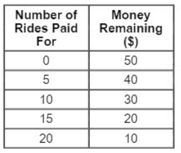 On a recent trip to a local amusement park, Sadie kept track of how much money she had remaining after paying to go on rides. Some of her data are shown in the table.