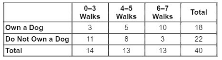 Based on the table, which statement about the association between owning a dog and the frequency of taking outdoor walks is true?