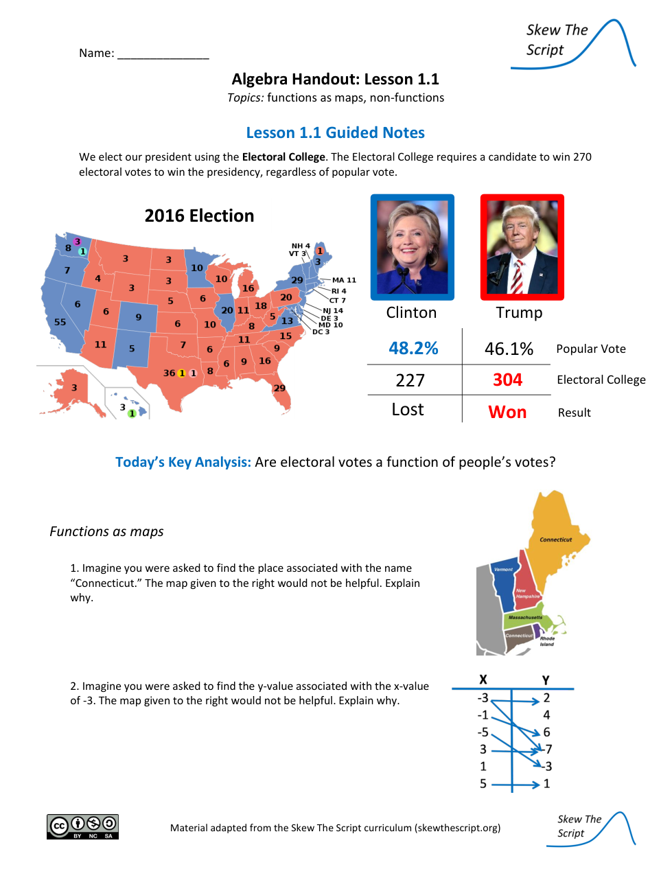 Alg 1 Function Elections Lesson 1 from a textbook ppt