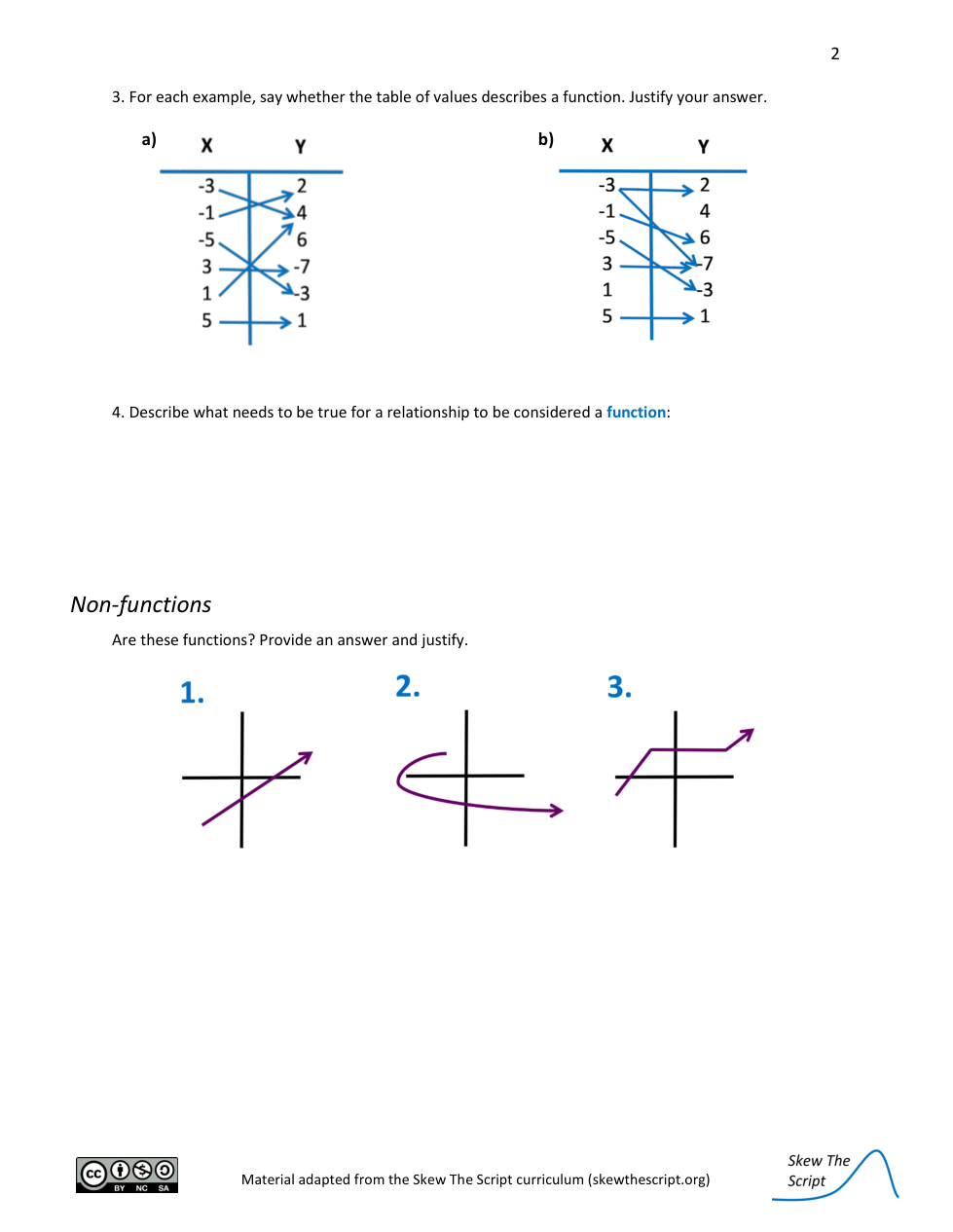 For each example, say whether the table of values describes a function. Justify your answer.
