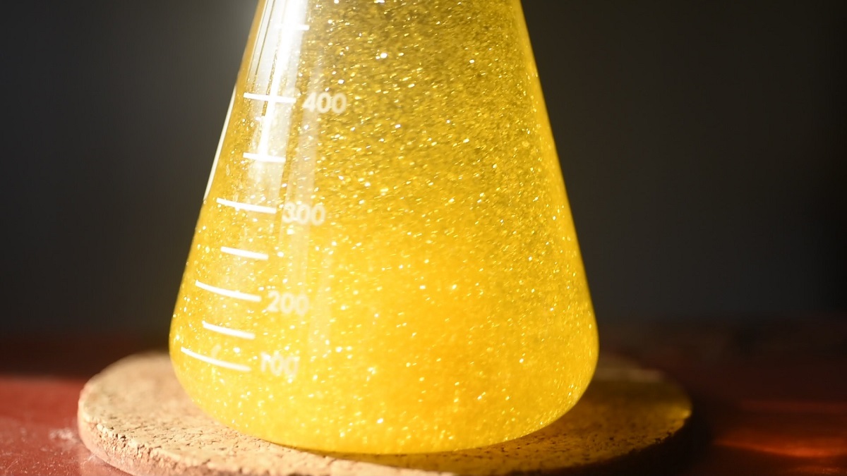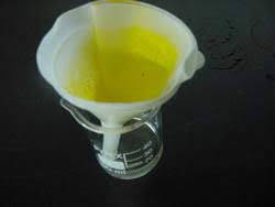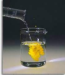 A yellowish cloudy liquid is poured through a filter. A yellow solid remains in the filter and a clear colorless liquid appears in the beaker below. What can be concluded from this information?