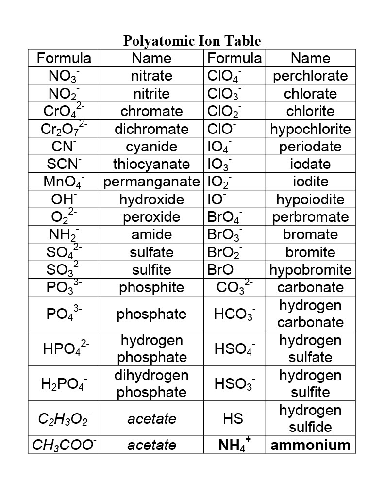 Use the attached periodic table and ion charts to help you in your progress. They will enlarge when you click on them. When you have images on the test, you can click to enlarge them as well.