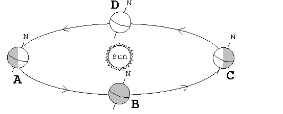 given this diagram, note where the solstices and equinoxes fall for the northern hemisphere.