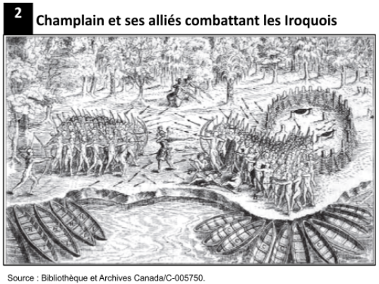 Dès le début du 17e siècle, les Français et plusieurs nations autochtones concluent des alliances. Inscrivez le numéro du document qui présente une cause de ces alliances et le numéro de celui qui en présente une conséquence pour les Français.