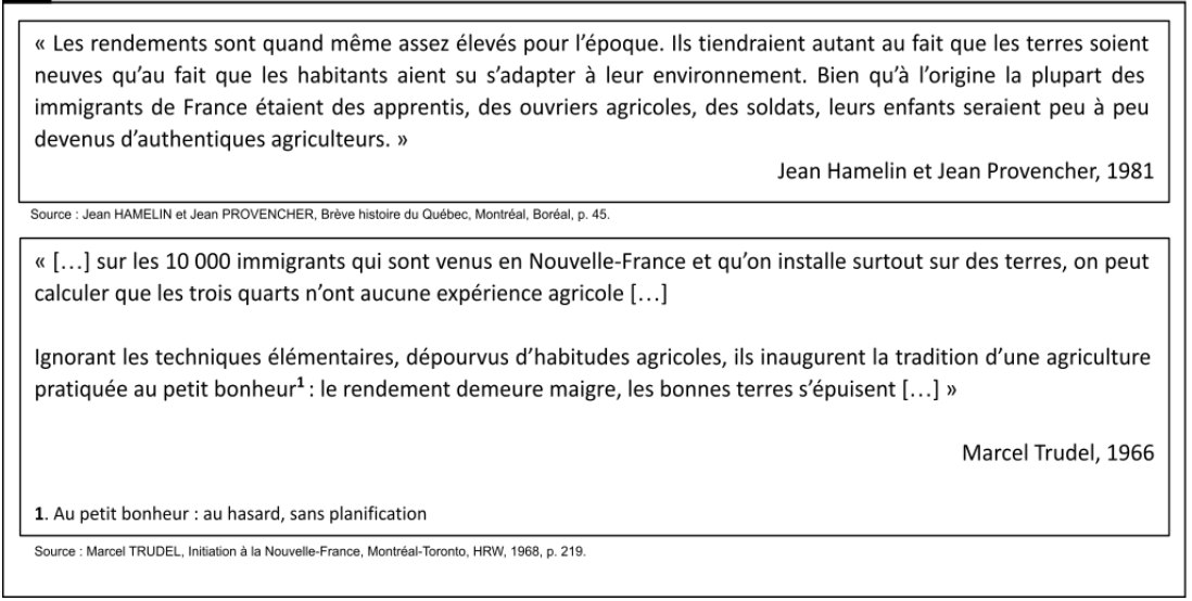 Le document ci-dessous présente le point de vue de deux historiens sur l’agriculture en Nouvelle-France. Sur quel point précis sont-ils en désaccord?