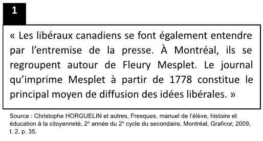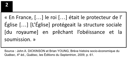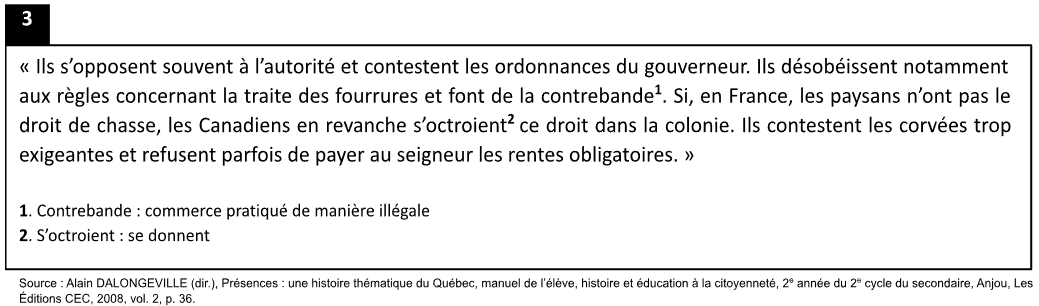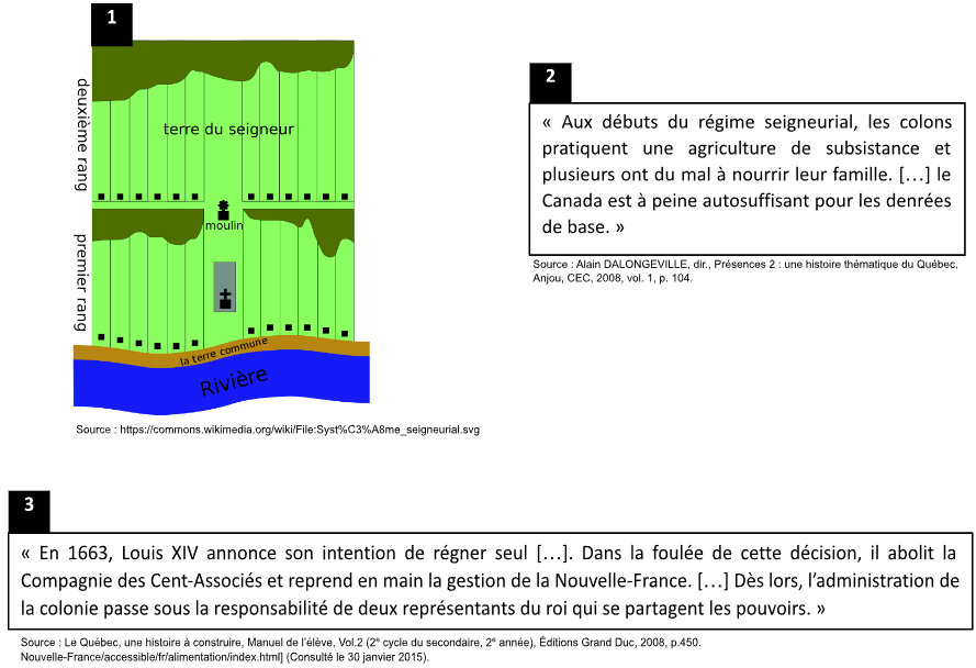Les documents 1 à 3 présentent des caractéristiques de l’organisation de la Nouvelle-France. Inscrivez le numéro des trois documents à l’endroit approprié.