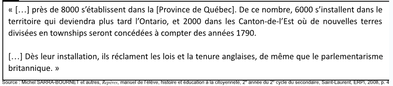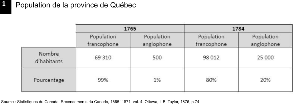 Indiquez une conséquence de l’arrivée des Loyalistes sur la composition de la population de la Province de Québec.