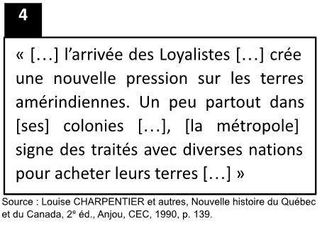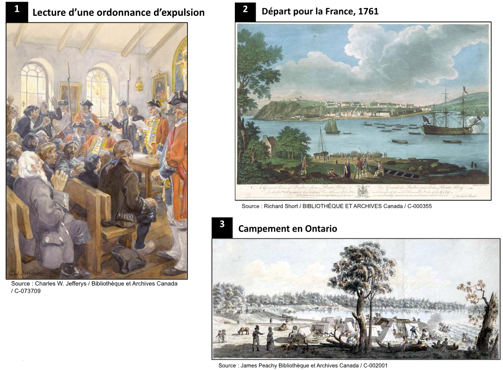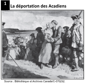 Les documents 1 à 3 présentent des images de déplacement de population survenu en Amérique du Nord au 18e siècle. Inscrivez le numéro des documents à l’endroit approprié.