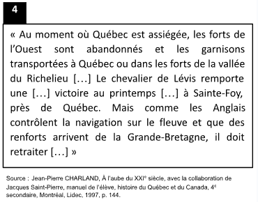 Les documents 1 à 4 font référence aux rapports de force entre les empires coloniaux français et britanniques. Indiquez si les faits présentés dans ces documents se déroulent avant ou après la capitulation de Montréal.