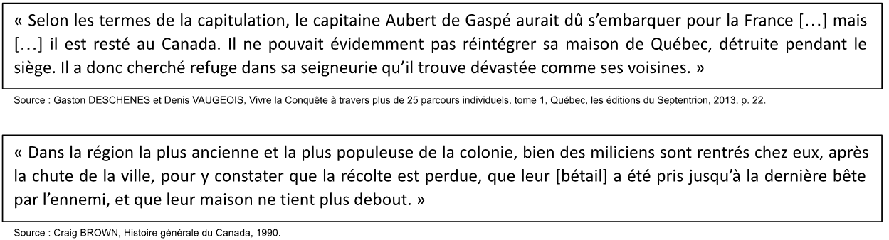 Le document ci-dessous présente le point de vue de deux historiens sur les conséquences de la Conquête. Sur quel point précis sont-ils en accord?
