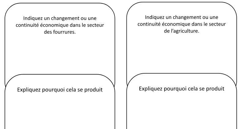 • indiquer un changement ou une continuité économique dans le secteur des fourrures et expliquer pourquoi cela se produit;