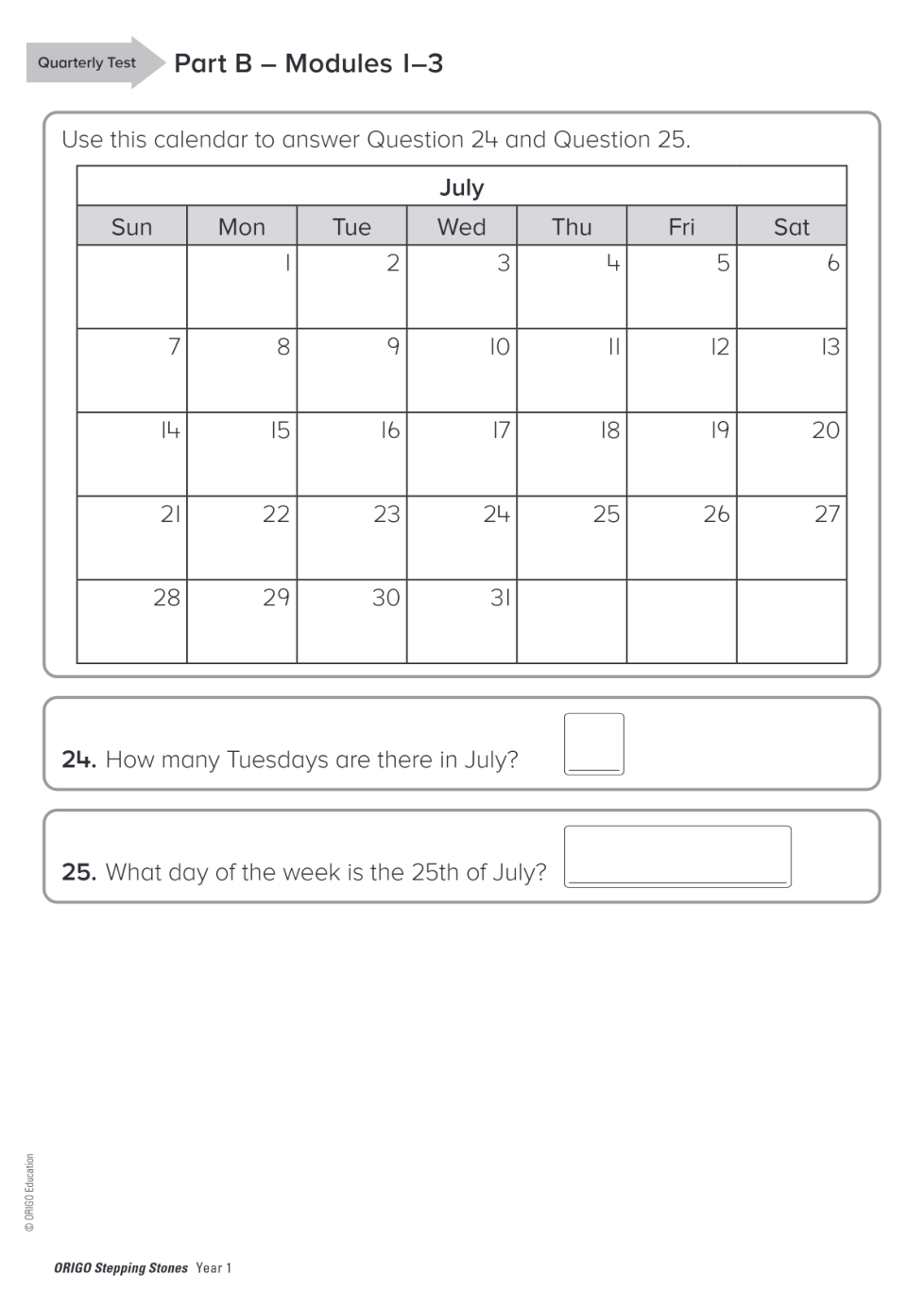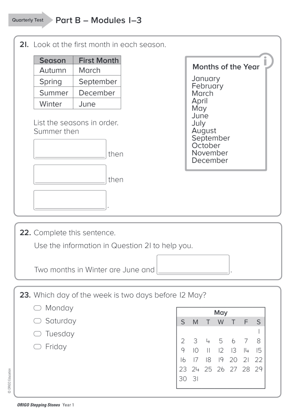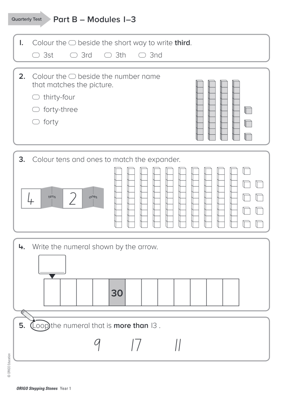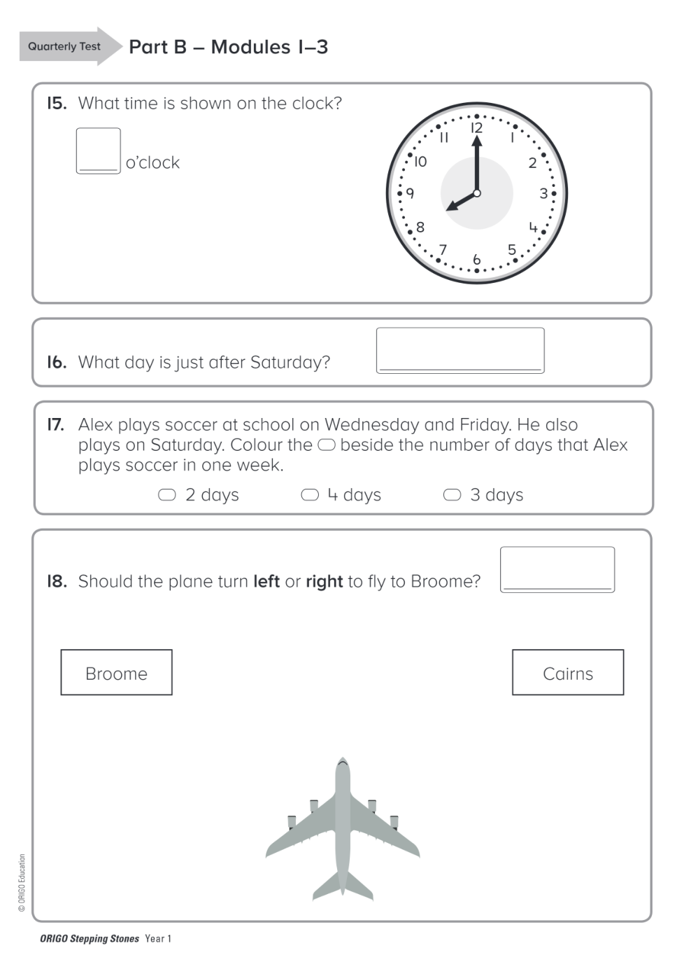 Geraldton PS Year 1 Quarterly Test Term 1