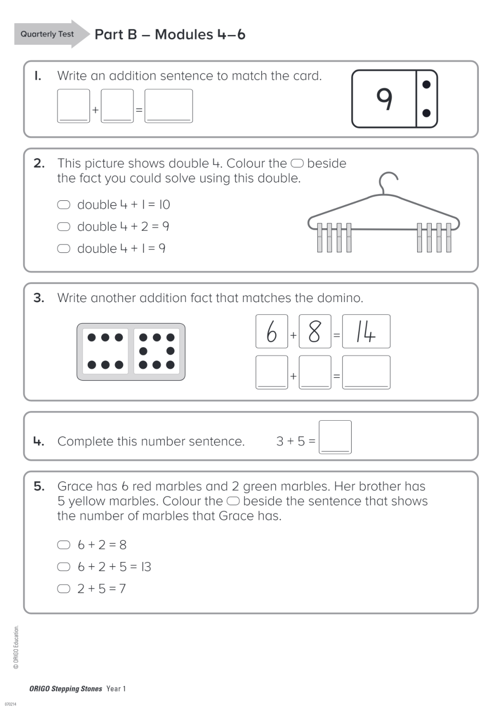 Geraldton PS Year 1 Term 2 Quarterly Test