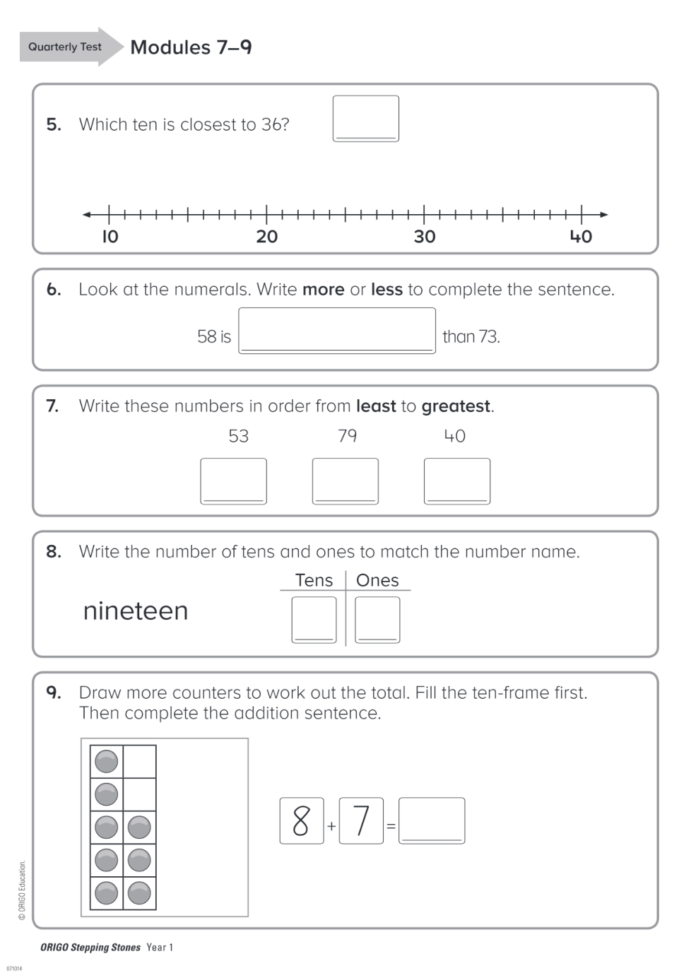 Geraldton PS Year 1 Term 3 Quarterly Test