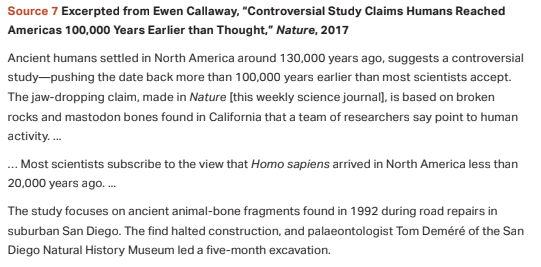Source: "Controversial Study Claims Human Reached Americas 100,000 Years Earlier than Thought" excerpt