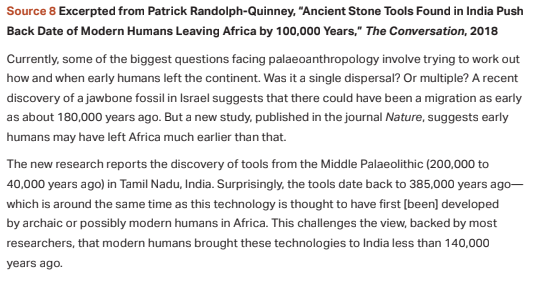 Source: "Ancient Stone Tools Found in India Push Back Date of Modern Humans Leaving Africa by 100,000 Years" excerpt