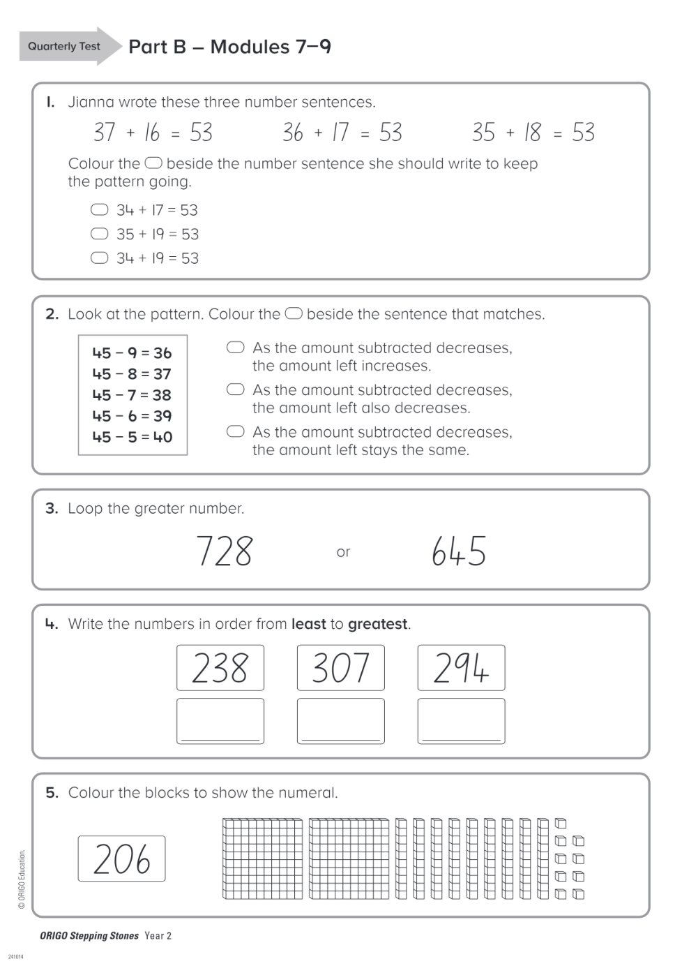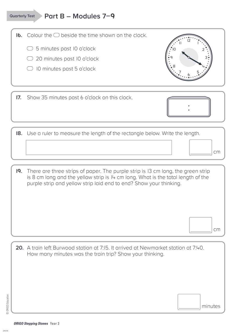 Geraldton PS Year 2 Term 3 Quarterly Test