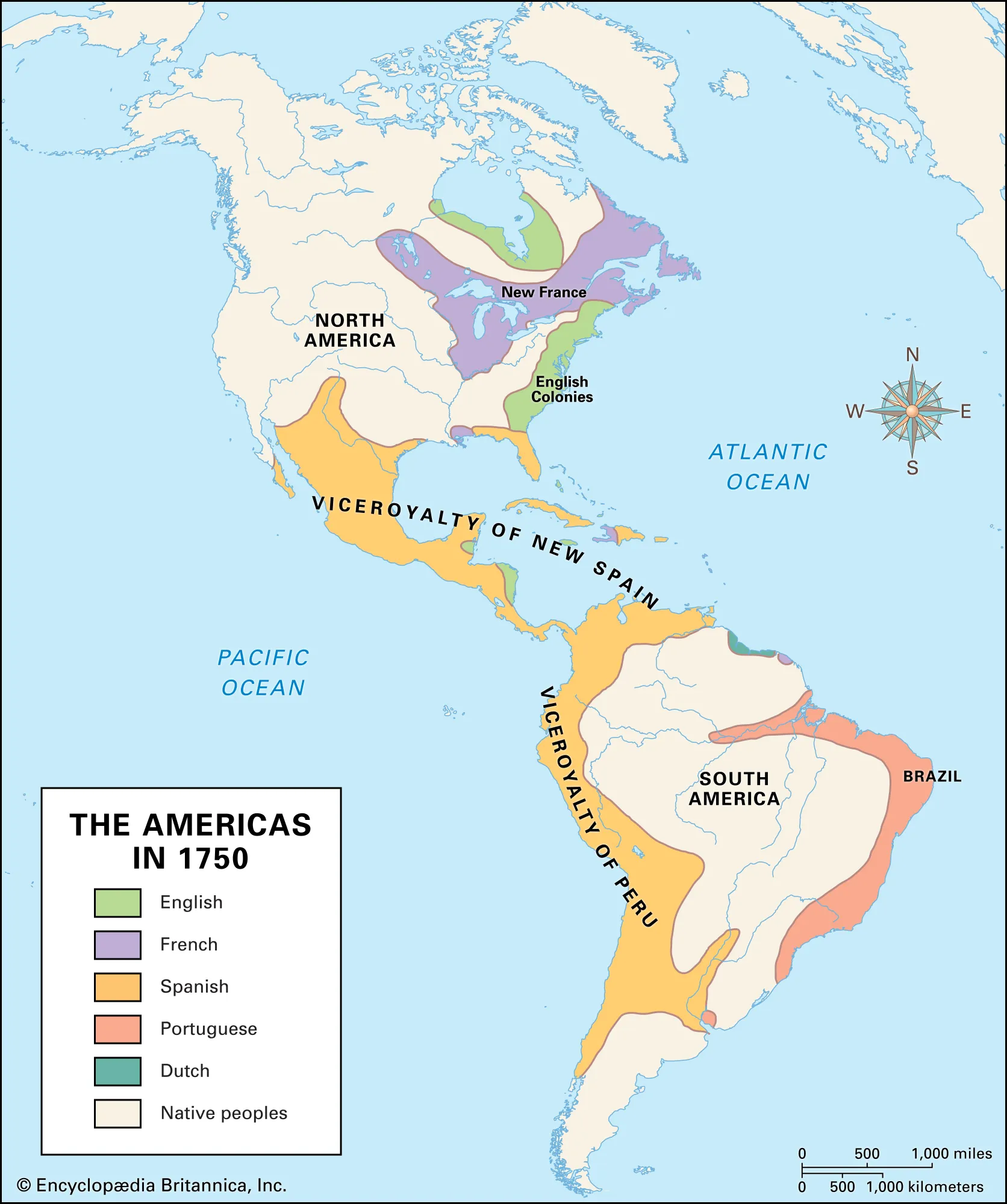 Based on this map of North America, who claimed the largest amount of land in 1750?