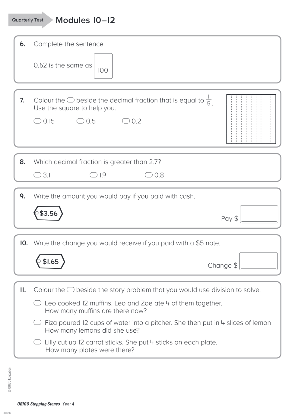 Geraldton PS Year 4 Term 4 Quarterly Test