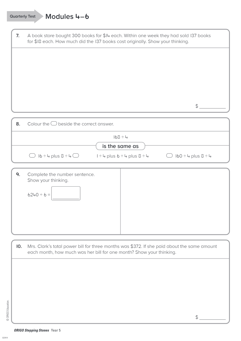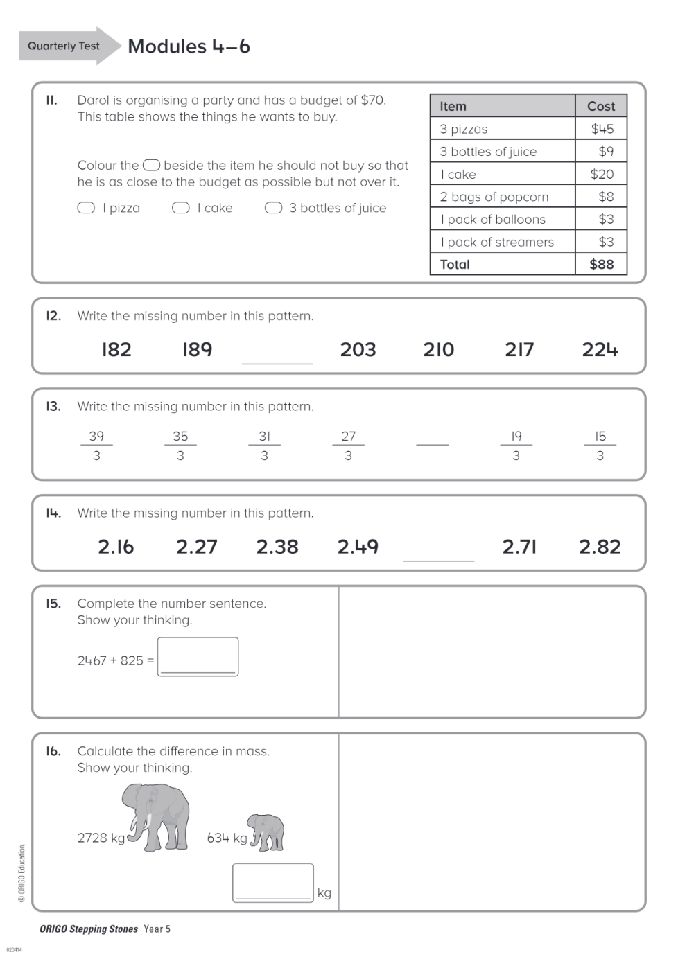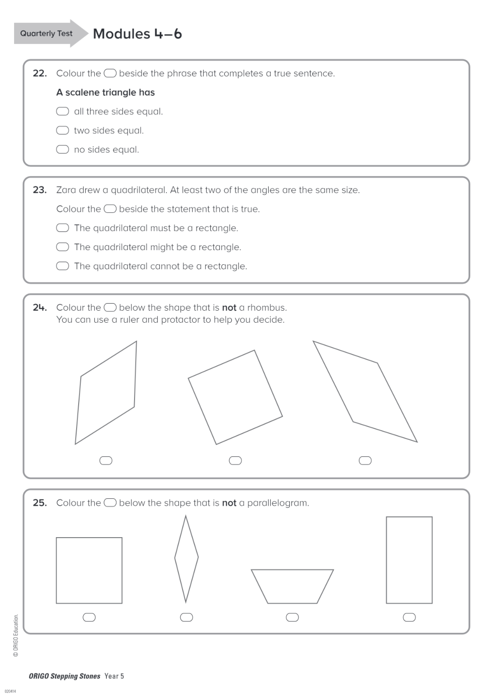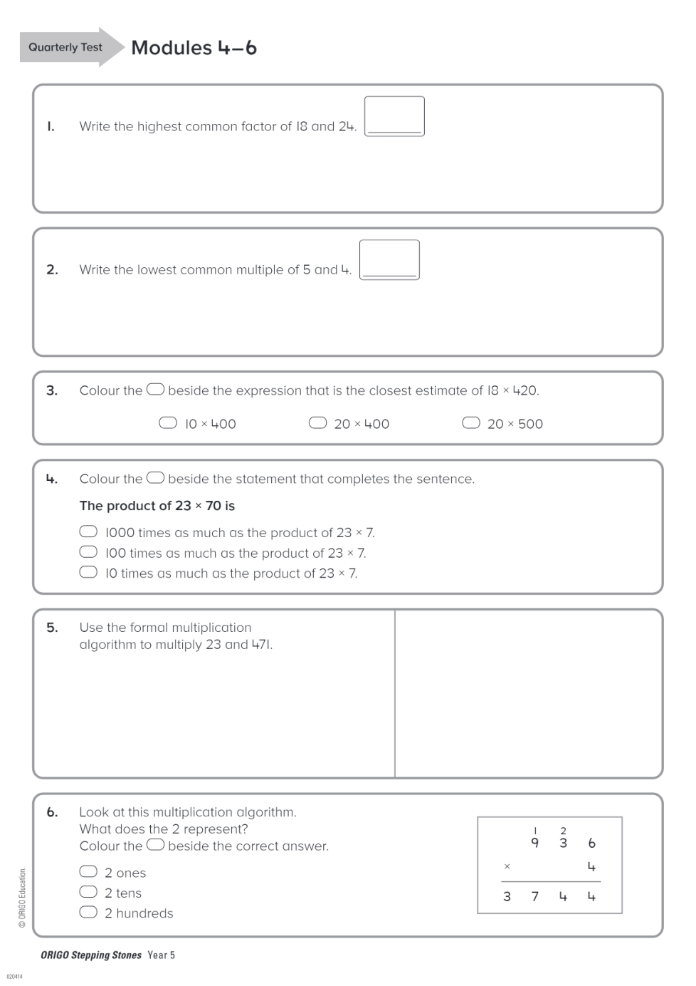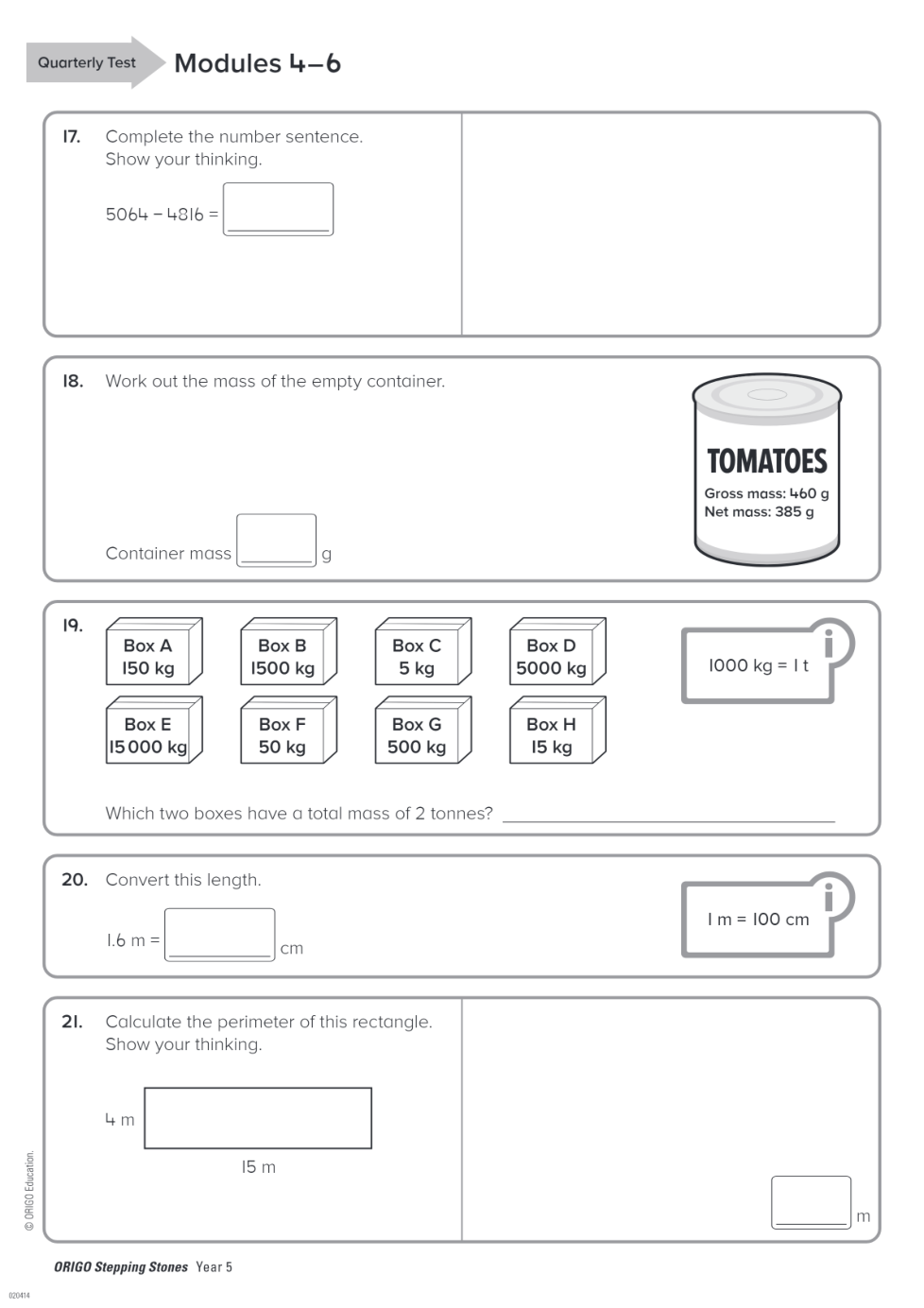 Geraldton PS Year 5 Term 2 Quarterly Test