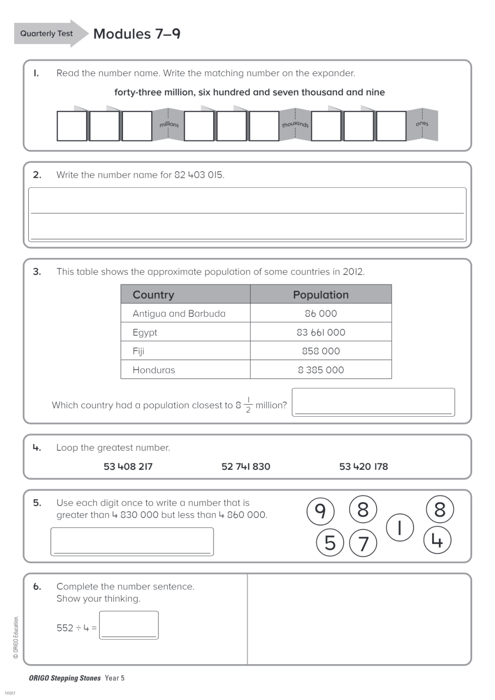 Geraldton PS Year 5 Term 3 Quarterly Test