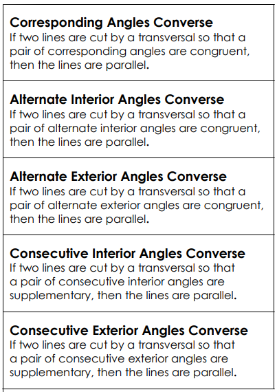Learning Target: Students will be able to prove lines are parallel by analyzing and comparing the angles formed by a transversal.