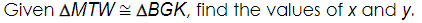 Given △UVW≅△TSR, find the values of x, y, and z.