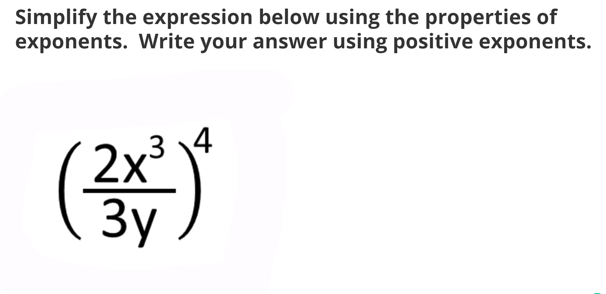 Simplify the expression below using the properties of exponents. Write your answer using positive exponents.