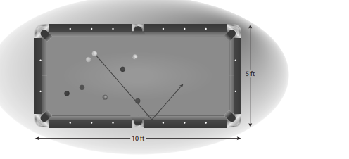 While playing pool, a player tries to shoot the eight ball into the corner pocket as shown. Imagine that a coordinate plane is placed over the pool table. The eight ball is at (5, 5/4) and the pocket they are aiming for is at (10, 5). The player is going to bank the ball off the side at (6, 0).