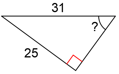 What inverse trigonometric function could you use to find the missing angle? (sin⁻¹, cos⁻¹, or tan⁻¹)
