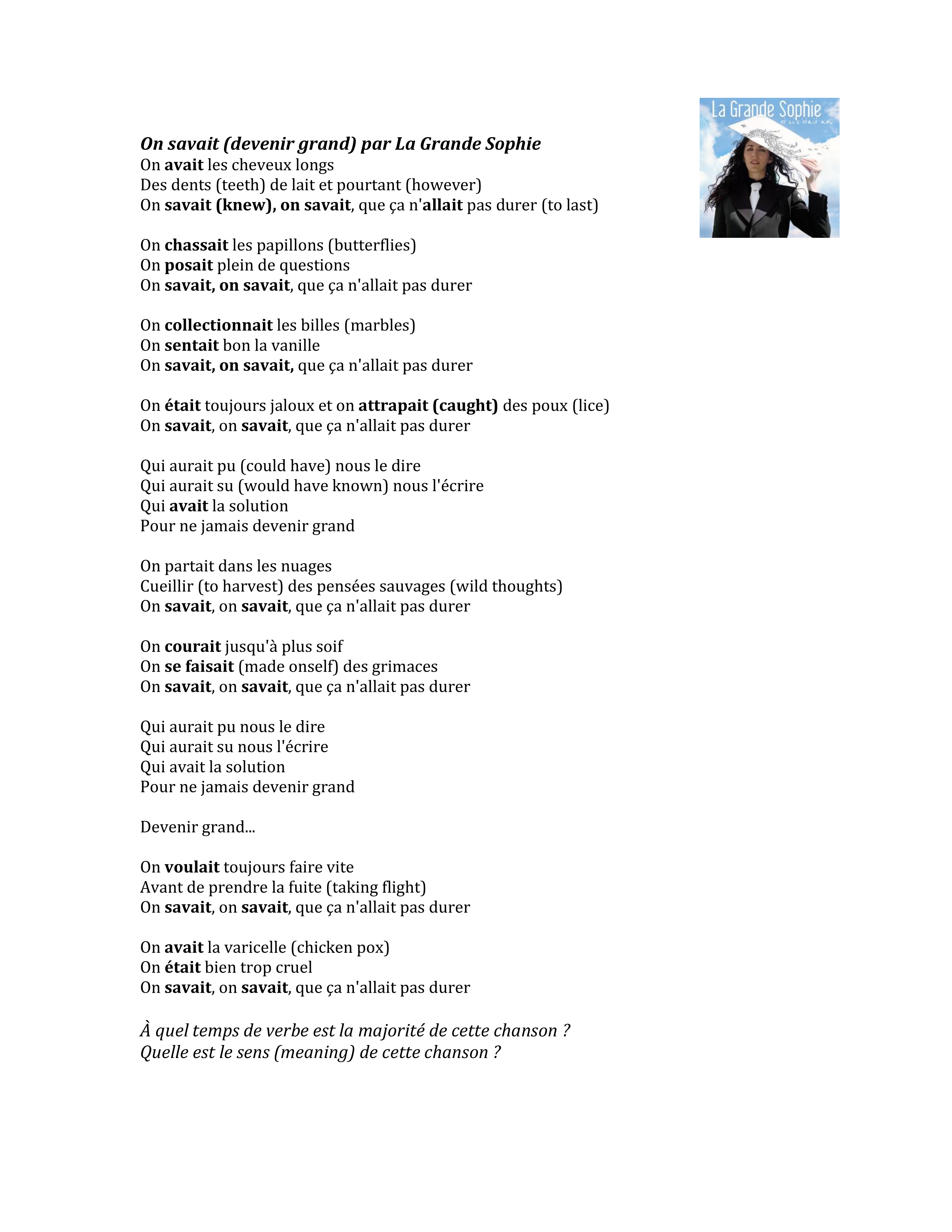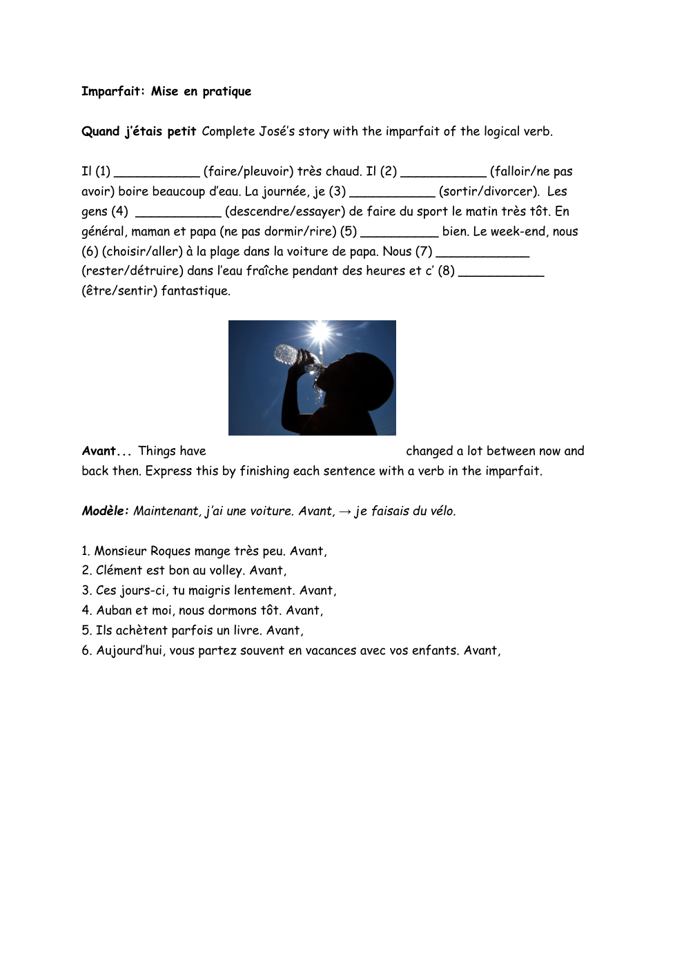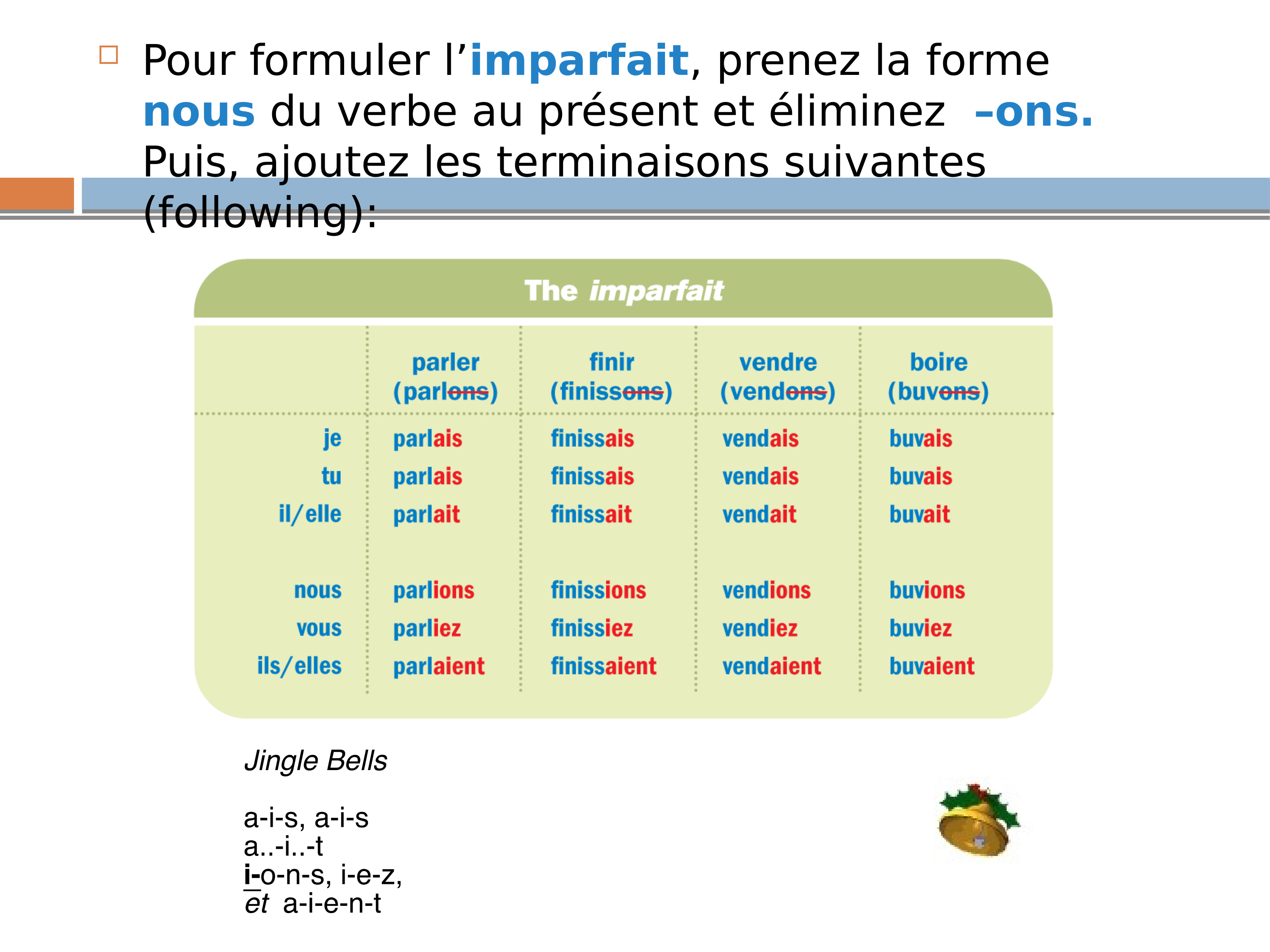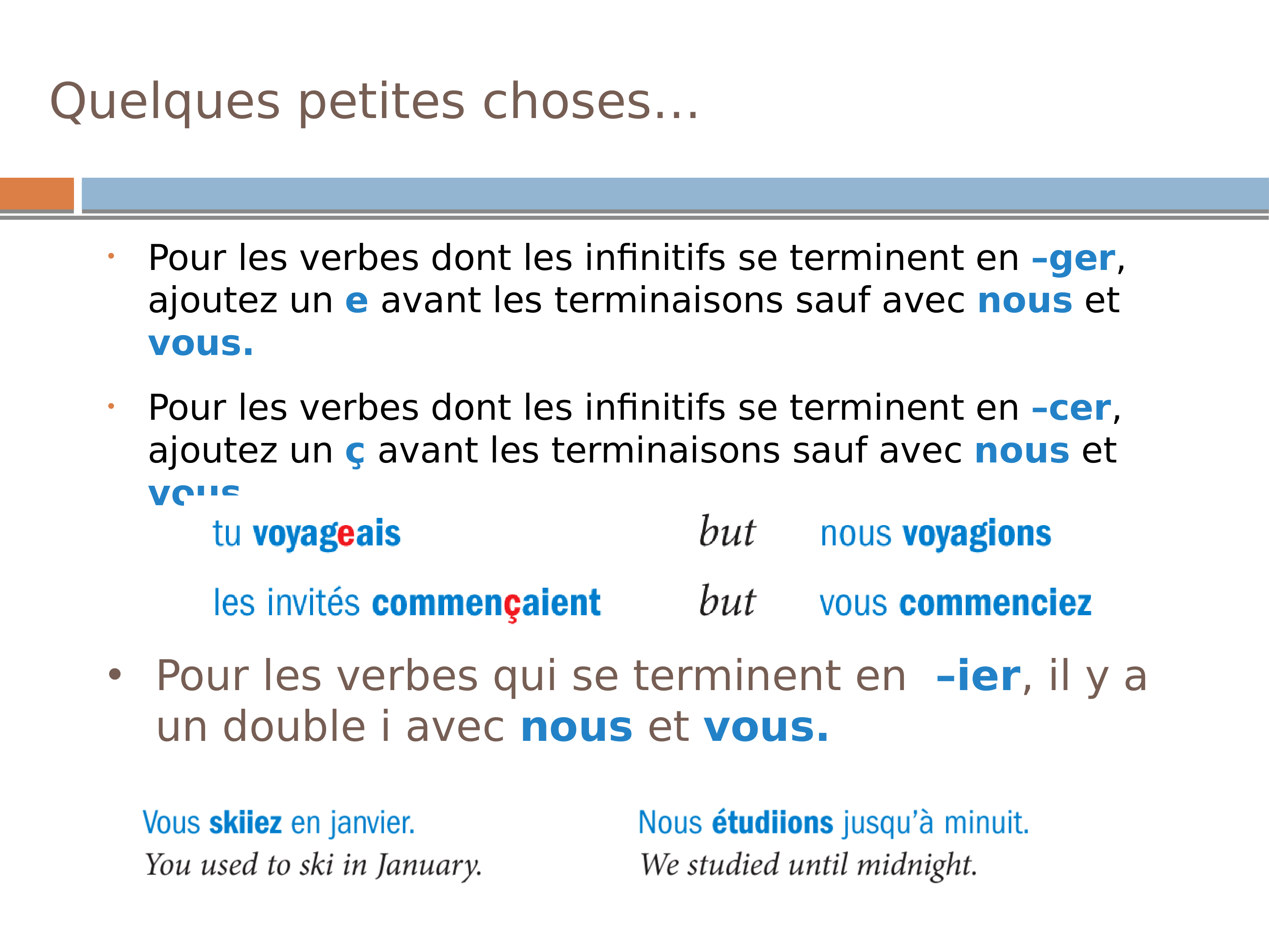 D'autres verbes en er, re, ir, et des irréguliers à l'imparfait: