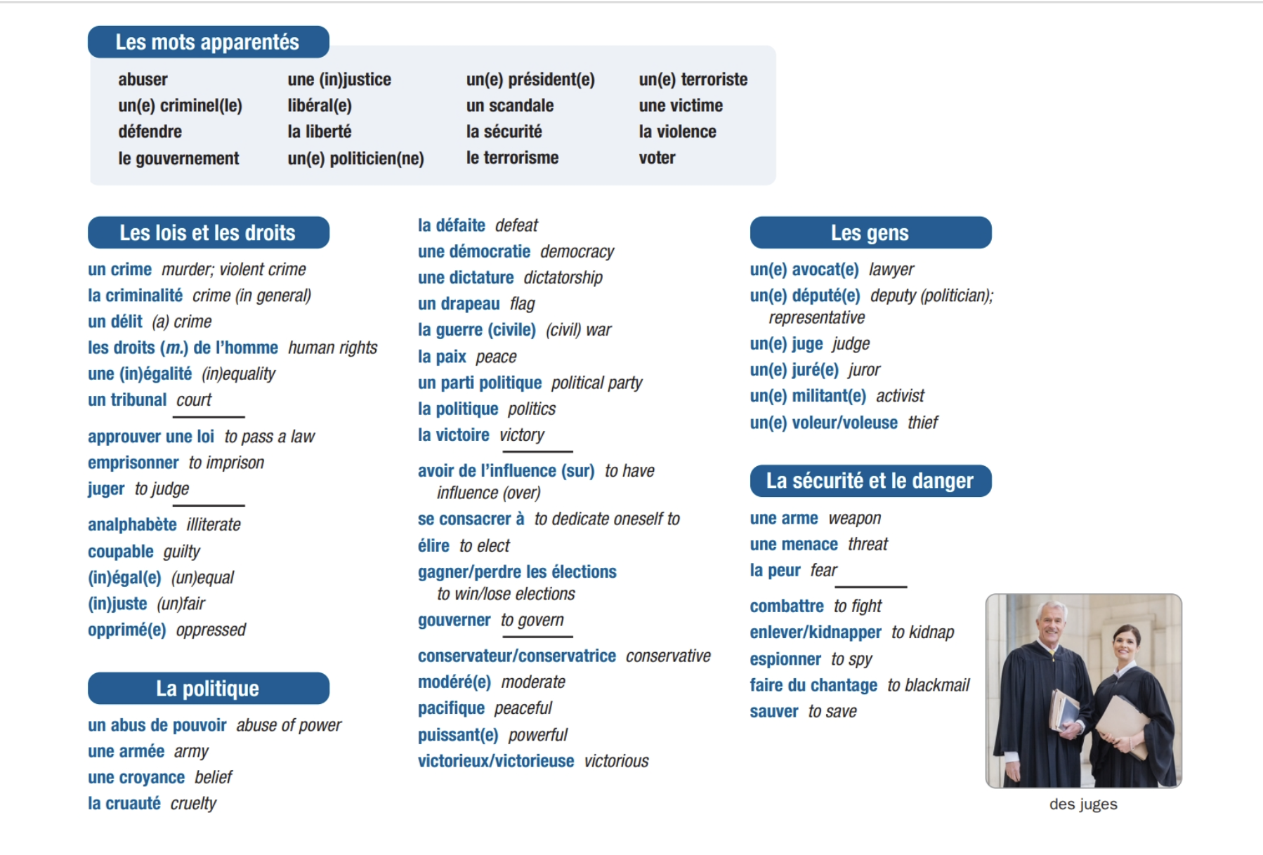 Fr 4: Unité 4: Contextes: La justice et la politique