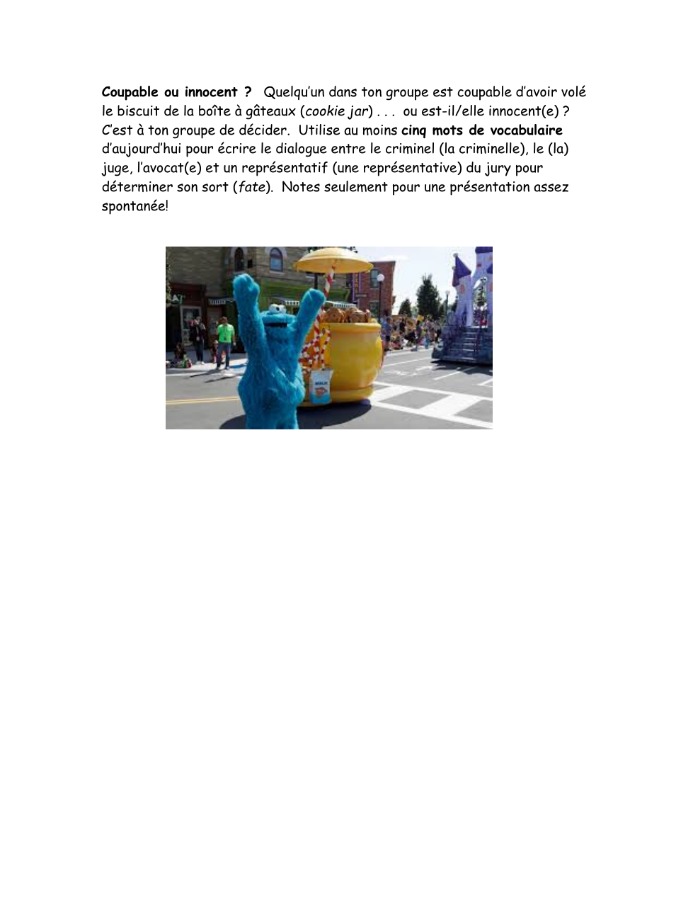 Cet exercice est un exercice oral. Vous pouvez prendre des notes, mais n'écrivez pas votre histoire mot pour mot!