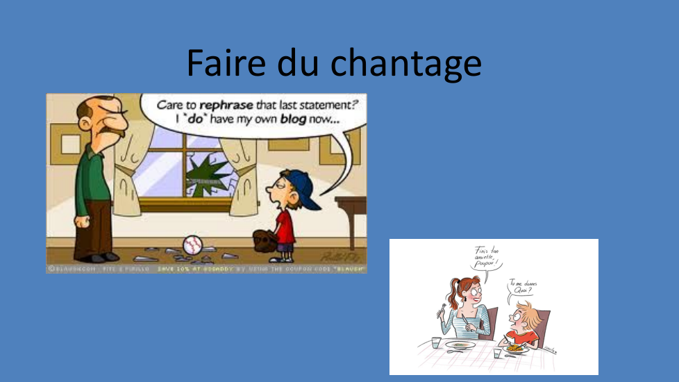 Quand as-tu fait du chantage à quelqu’un ? Sur qui voudrais-tu avoir de l’influence ? Pourquoi ?