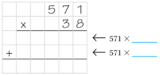 → 105 × 5 tens = __________ tens or __________ ones (second partial product)