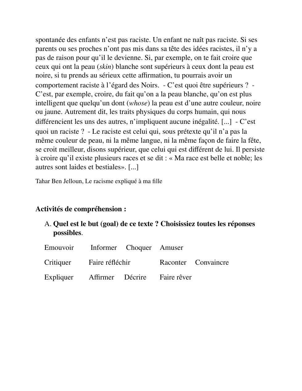 Quelle est ta définition d’une raciste ?