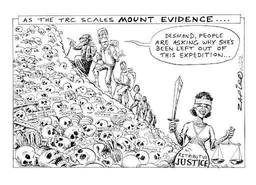 Look at the cartoon and state whether you think the author believed that the TRC provided justice to ALL victims of apartheid? Give a reason for your answer.