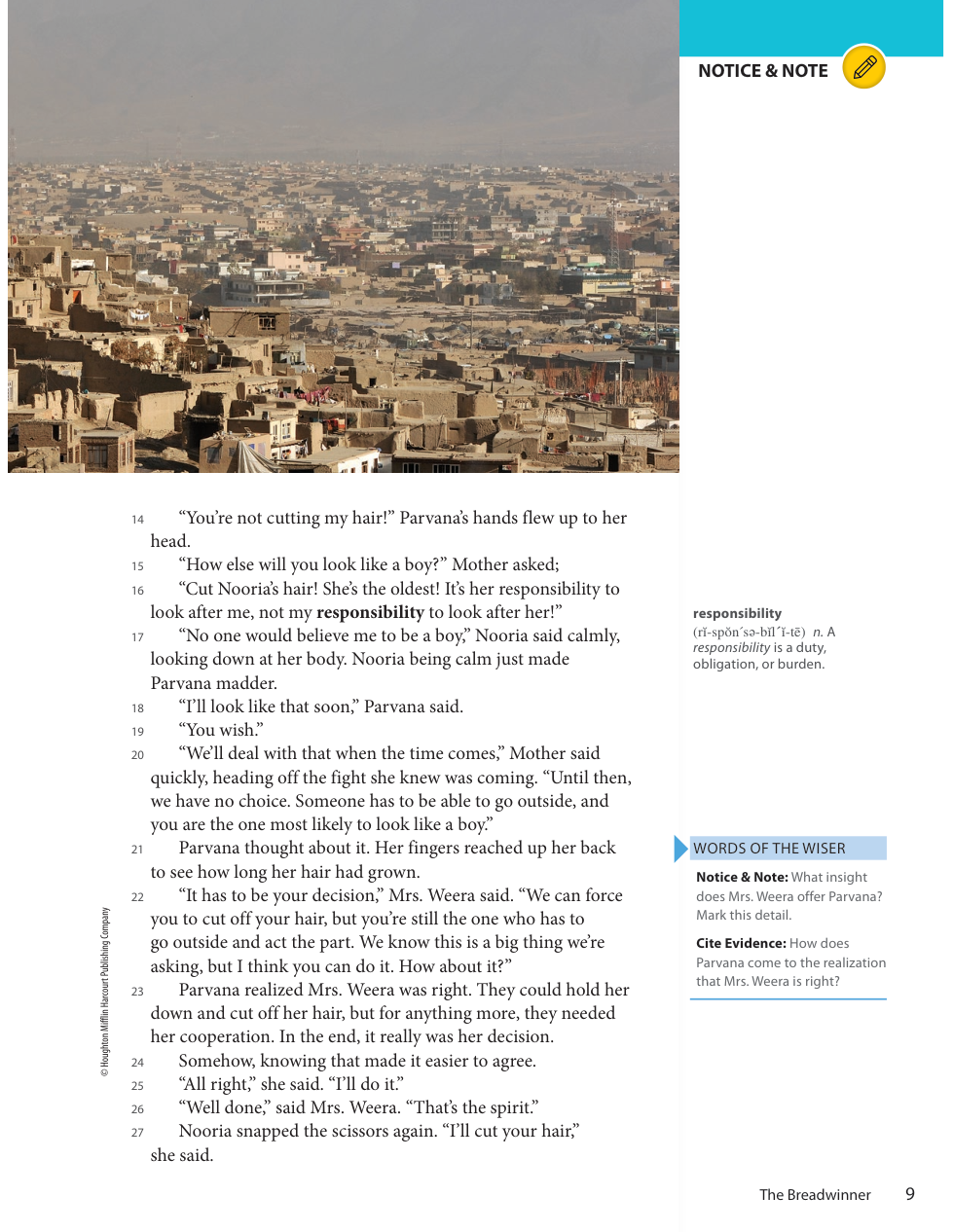 In the story, Parvana's haircut represents-