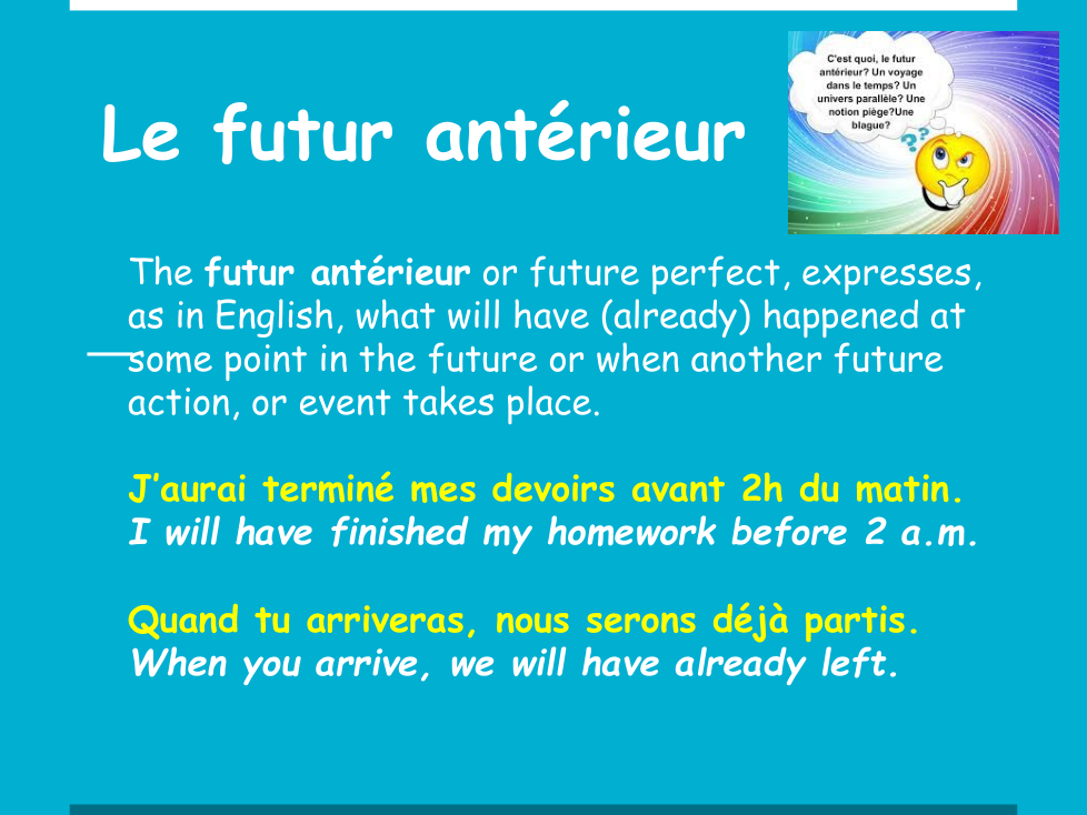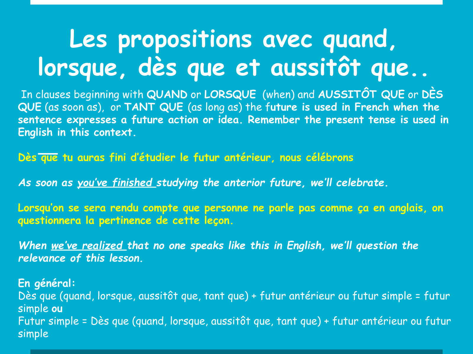 Dès que tu finiras d'´étudier le futur antérieur, nous célébrons.