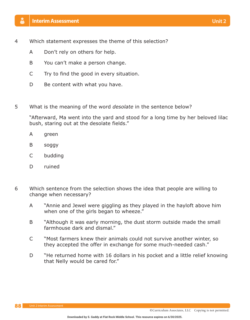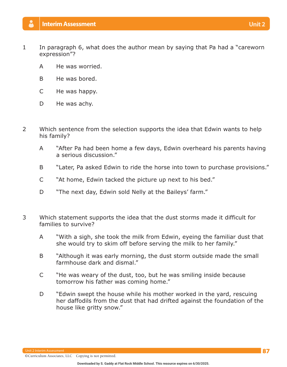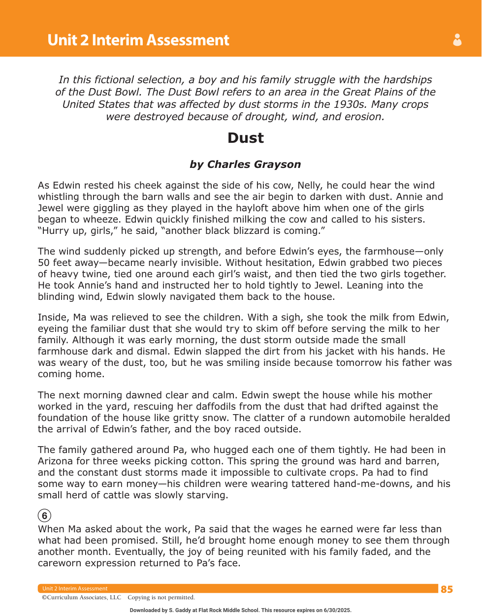 This is the Interim Assessment PDF in Formative for Unit 2 (RL 6.1,6.2,6.3)