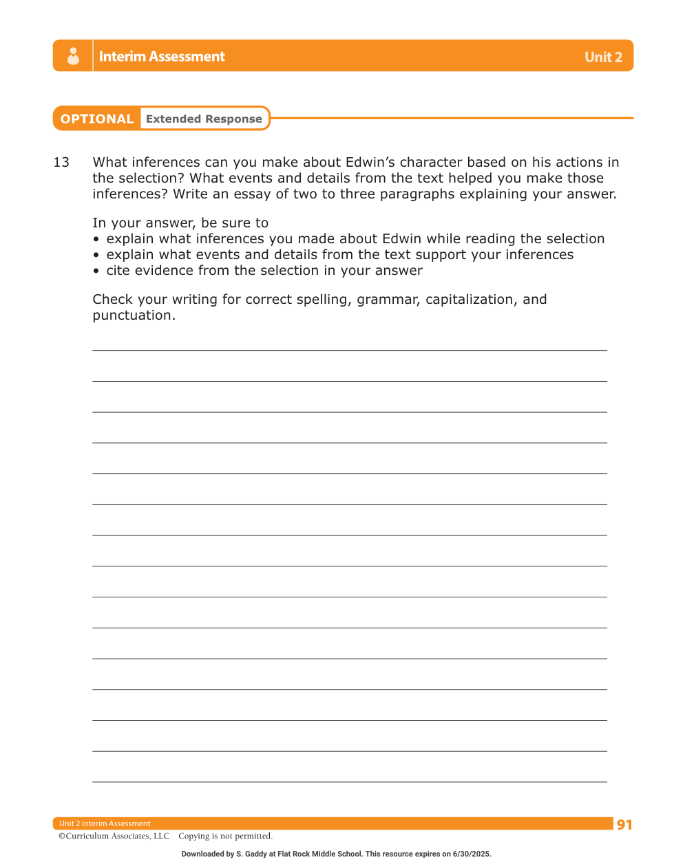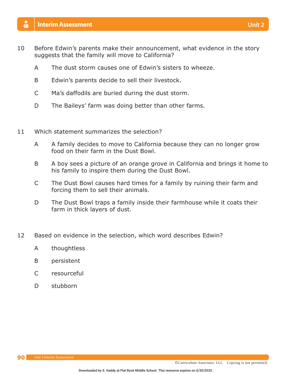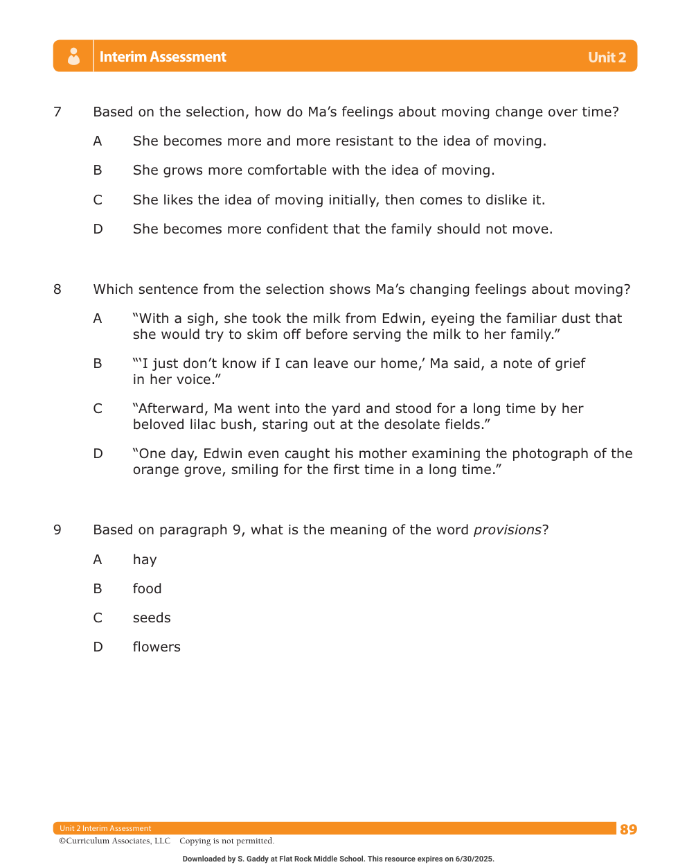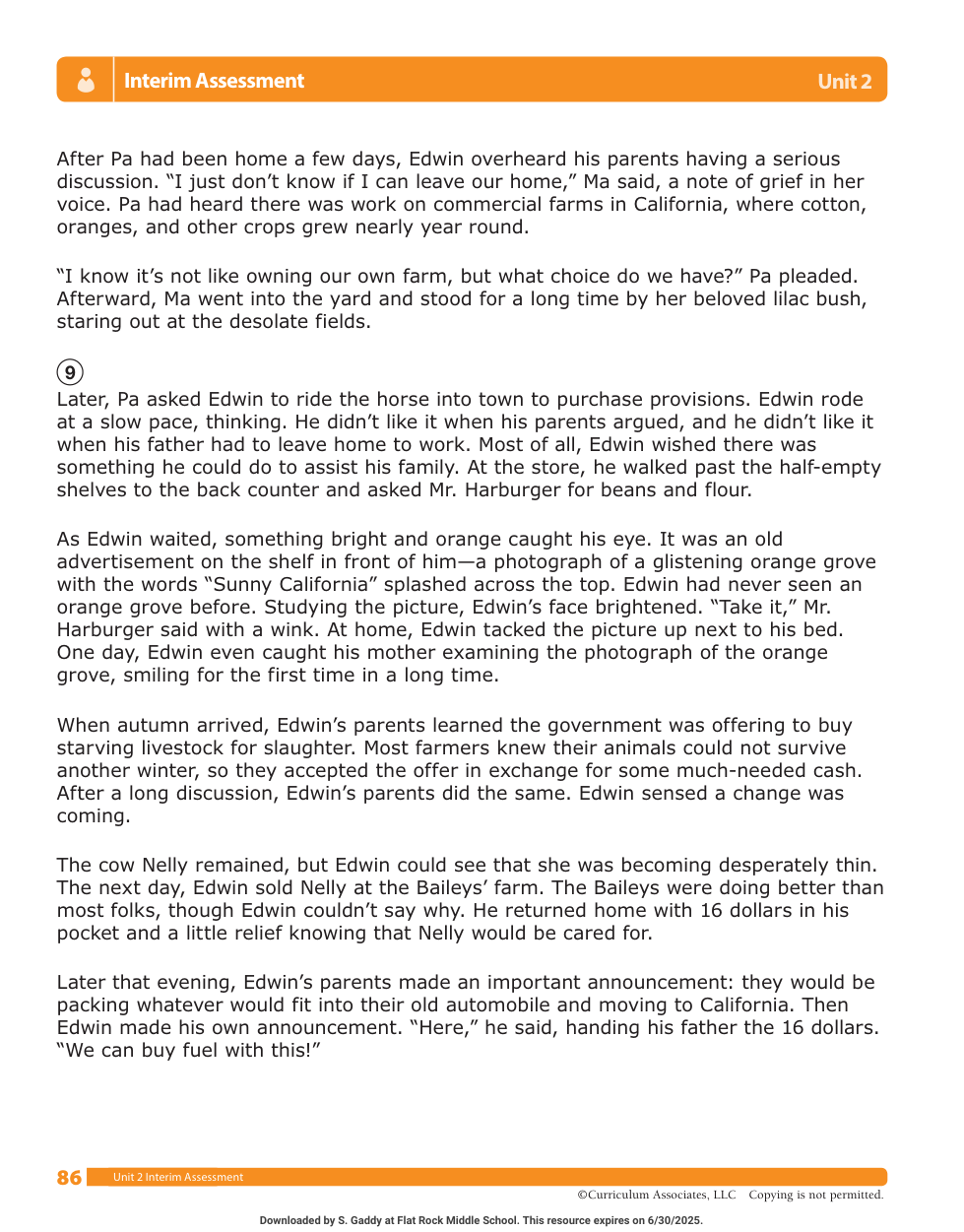This is the Interim Assessment PDF in Formative for Unit 2 (RL 6.1,6.2,6.3)