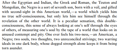 Explain what W.E.B. DuBois means by 'double-consciousness'.