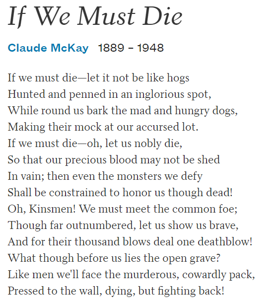 Identify a theme from the poem "If We Must Die" by Claude Mckay.