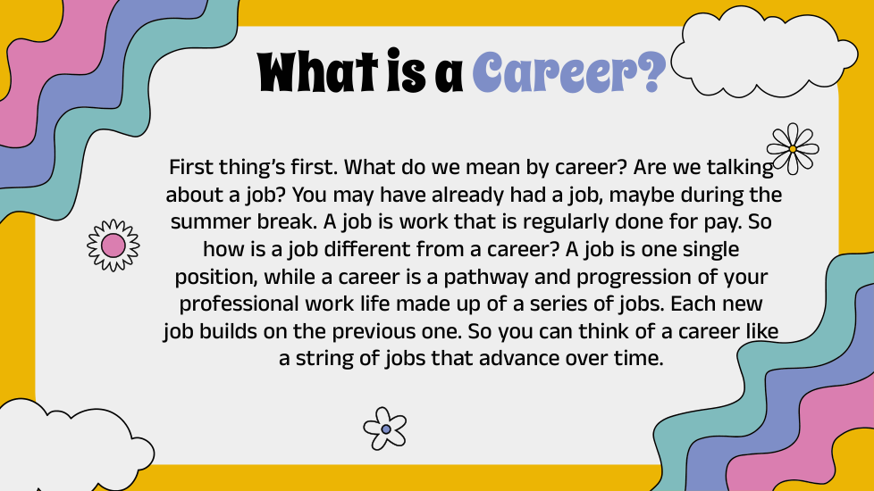 Drag and drop each item to the correct category. Is it a JOB or a CAREER?